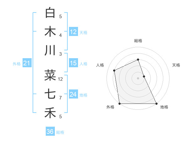 白木川 菜七禾さんを姓名の画数から五運を鑑定