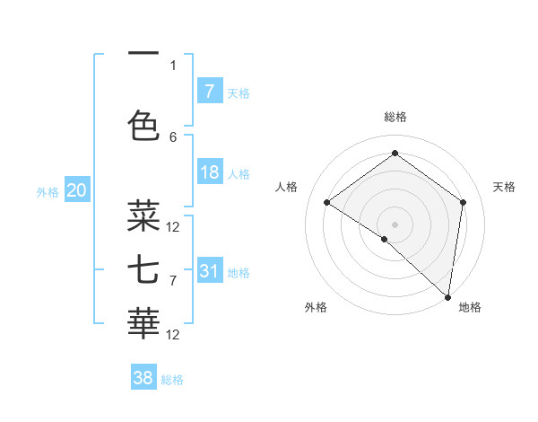 一色 菜七華さんの総格は38画の4点!