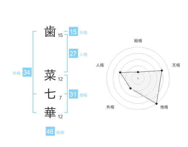 歯 菜七華さんを姓名の画数から五運を鑑定