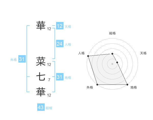 華 菜七華さんの外格は31画の5点!