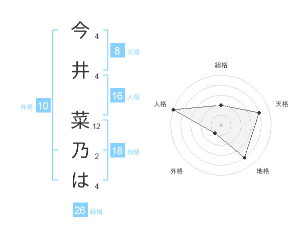 今井 菜乃はさんを姓名の画数から五運を鑑定