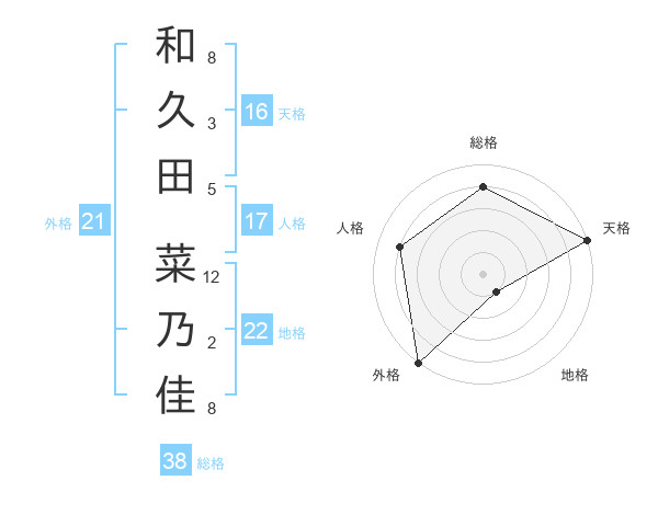 和久田 菜乃佳さんを姓名の画数から五運を鑑定