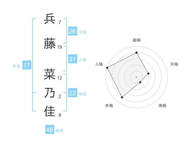 兵藤 菜乃佳さんを姓名の画数から五運を鑑定