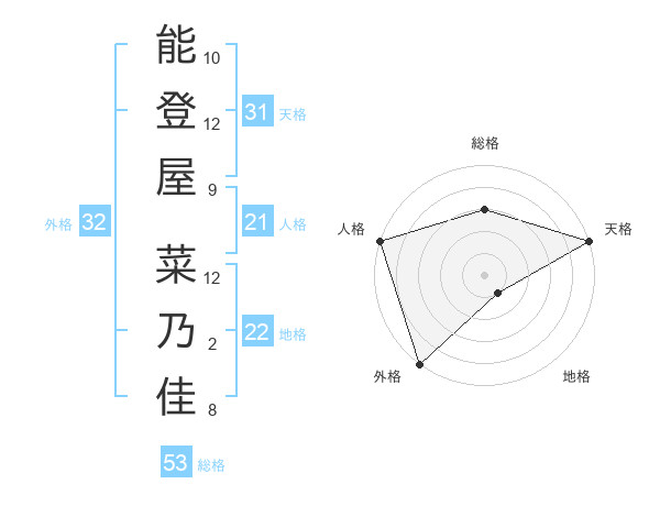 能登屋 菜乃佳さんを姓名の画数から五運を鑑定