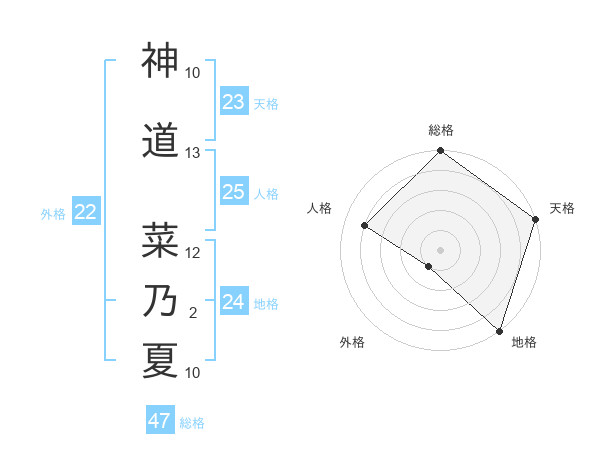 神道 菜乃夏さんの総格は47画の5点!