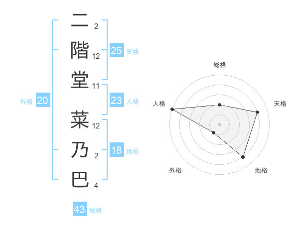 二階堂 菜乃巴さんを姓名の画数から五運を鑑定