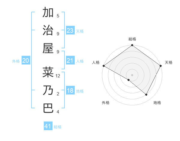 加治屋 菜乃巴さんを姓名の画数から五運を鑑定