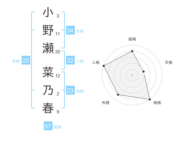 小野瀬 菜乃春さんを姓名の画数から五運を鑑定