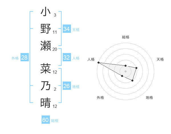 小野瀬 菜乃晴さんの総格は60画の1点!