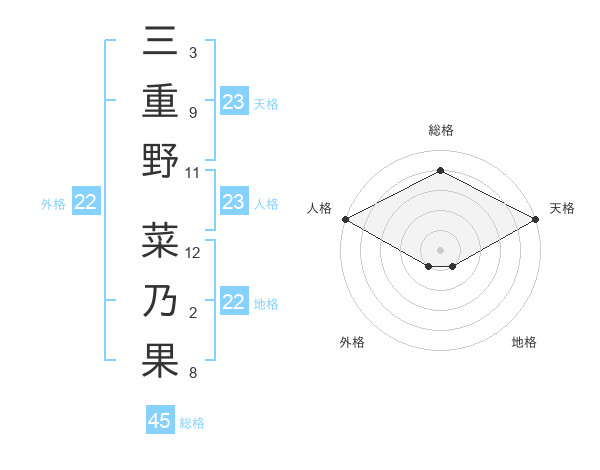 三重野 菜乃果さんの総格は45画の4点!