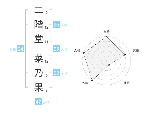 二階堂 菜乃果さんの総格は47画の5点!