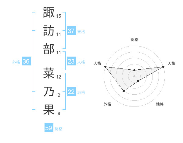 諏訪部 菜乃果さんの天格は37画の5点!
