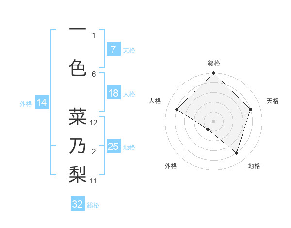 一色 菜乃梨さんを姓名の画数から五運を鑑定