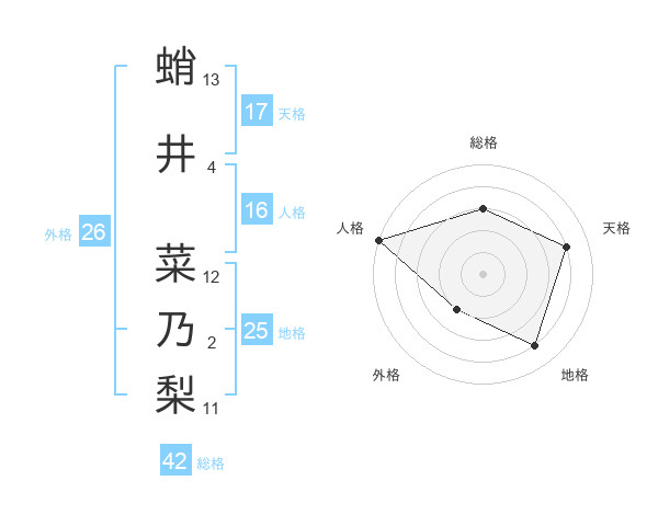 蛸井 菜乃梨さんを姓名の画数から五運を鑑定