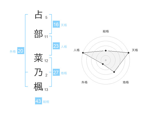 占部 菜乃楓さんの天格は16画の5点!