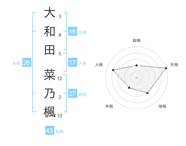 大和田 菜乃楓さんを姓名の画数から五運を鑑定
