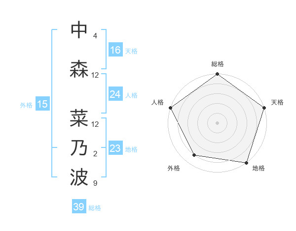 中森 菜乃波さんを姓名の画数から五運を鑑定
