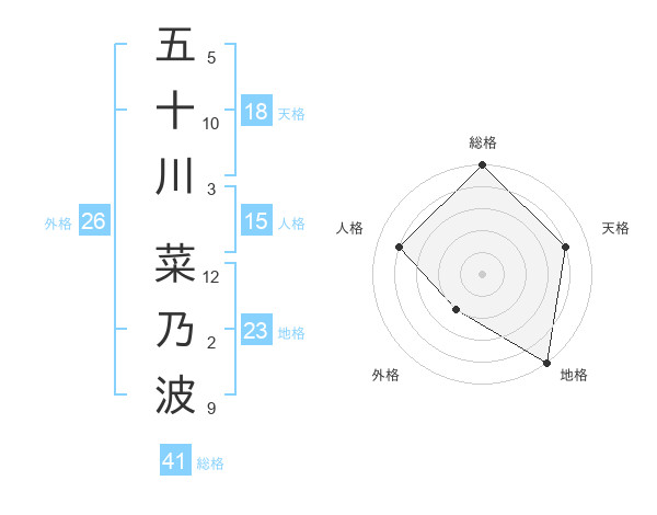 五十川 菜乃波さんを姓名の画数から五運を鑑定