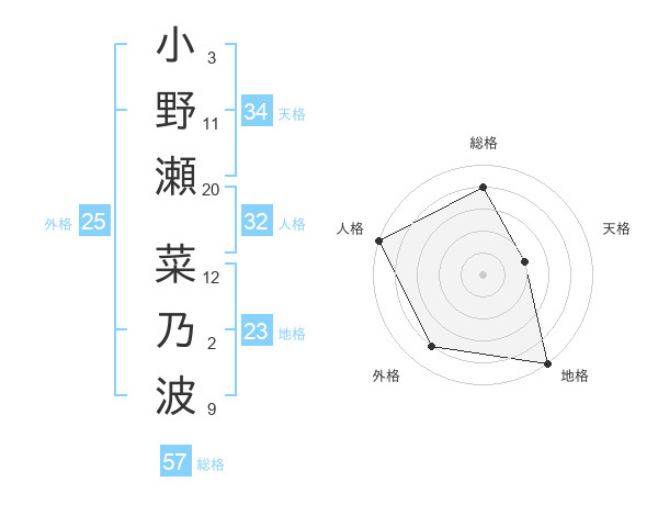 小野瀬 菜乃波さんを姓名の画数から五運を鑑定