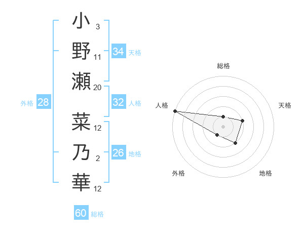 小野瀬 菜乃華さんを姓名の画数から五運を鑑定