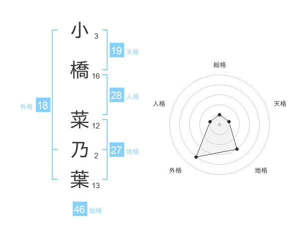 小橋 菜乃葉さんを姓名の画数から五運を鑑定