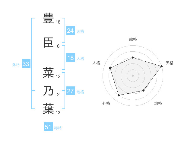 豊臣 菜乃葉さんの総格は51画の3点!