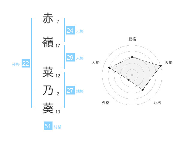 赤嶺 菜乃葵さんの総格は51画の3点!