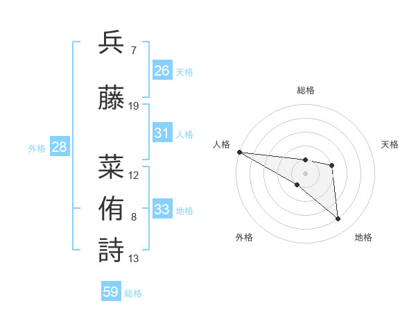兵藤 菜侑詩さんを姓名の画数から五運を鑑定