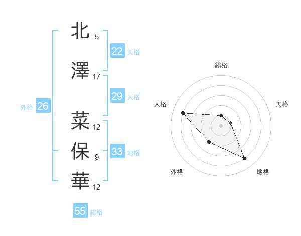 北澤 菜保華さんを姓名の画数から五運を鑑定