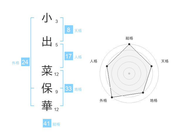 小出 菜保華さんを姓名の画数から五運を鑑定