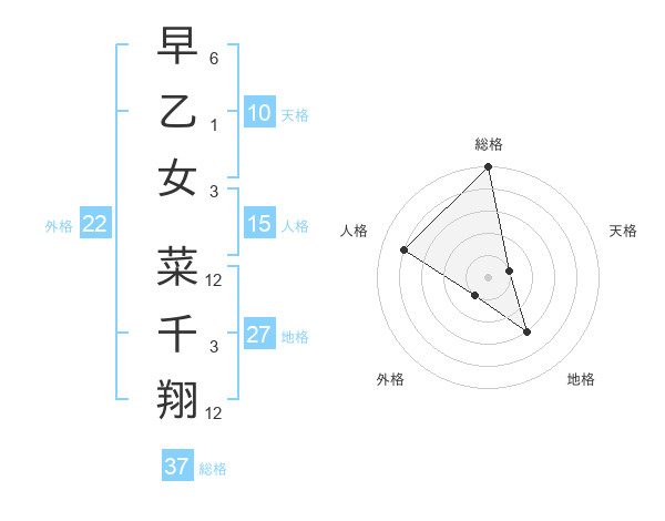 早乙女 菜千翔さんの総格は37画の5点!