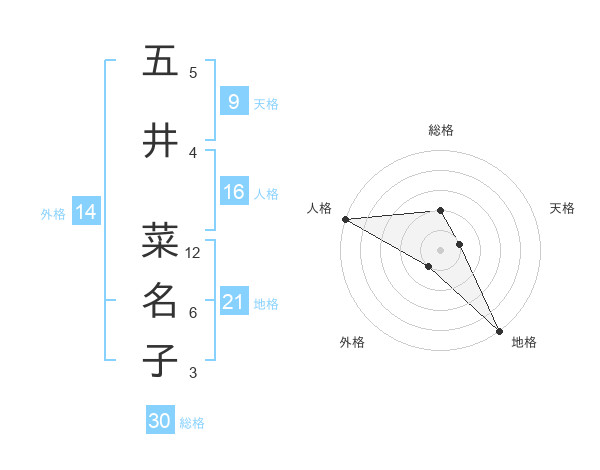 五井 菜名子さんの総格は30画の2点!