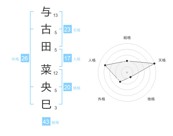 与古田 菜央巳さんを姓名の画数から五運を鑑定