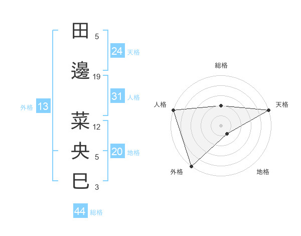 田邊 菜央巳さんを姓名の画数から五運を鑑定