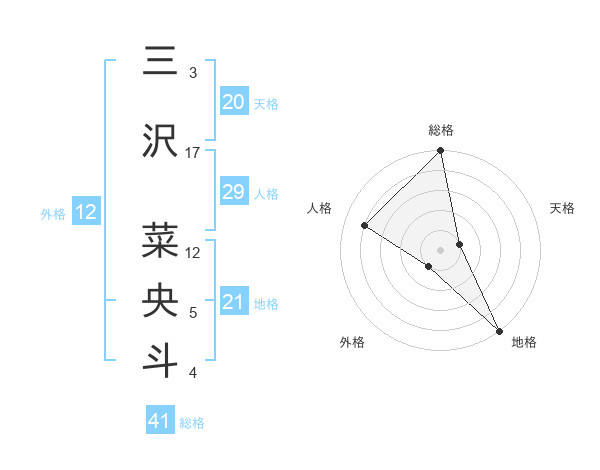 三沢 菜央斗さんの地格は21画の5点!