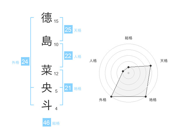 德島 菜央斗さんの地格は21画の5点!