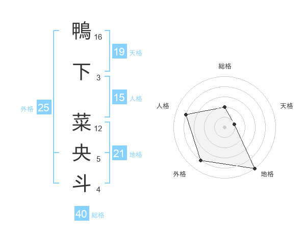 鴨下 菜央斗さんを姓名の画数から五運を鑑定