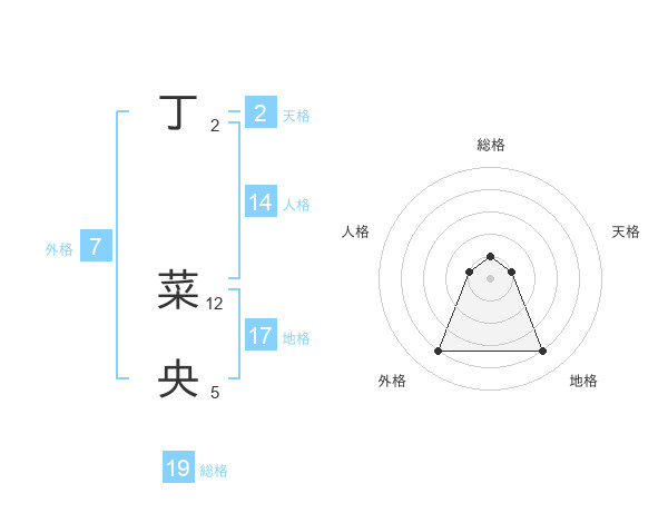 丁 菜央さんの総格は19画の1点!