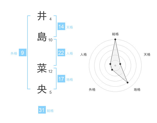 井島 菜央さんの総格は31画の5点!