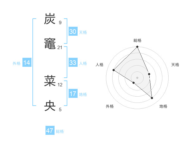 炭竈 菜央さんの総格は47画の5点!