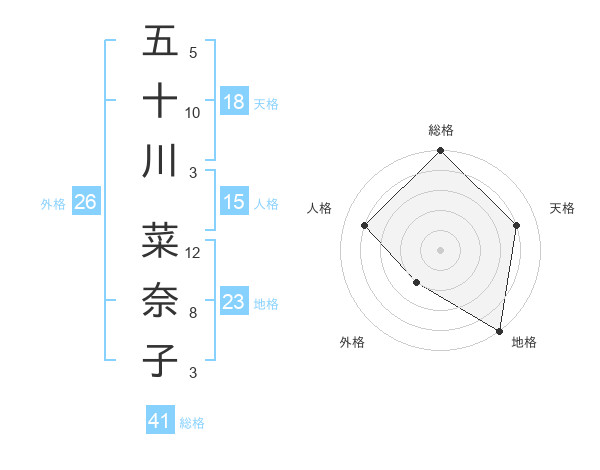 五十川 菜奈子さんを姓名の画数から五運を鑑定
