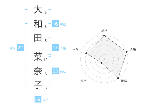 大和田 菜奈子さんを姓名の画数から五運を鑑定