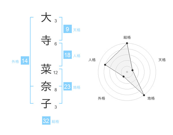 大寺 菜奈子さんを姓名の画数から五運を鑑定