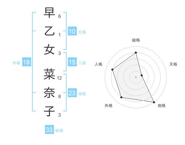 早乙女 菜奈子さんの総格は33画の4点!