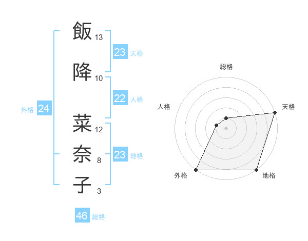 飯降 菜奈子さんの天格は23画の5点!