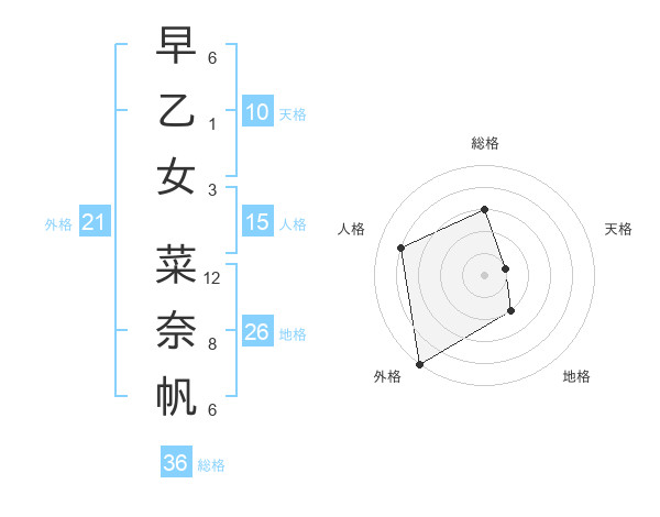 早乙女 菜奈帆さんを姓名の画数から五運を鑑定