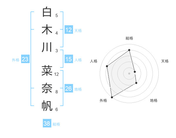 白木川 菜奈帆さんを姓名の画数から五運を鑑定