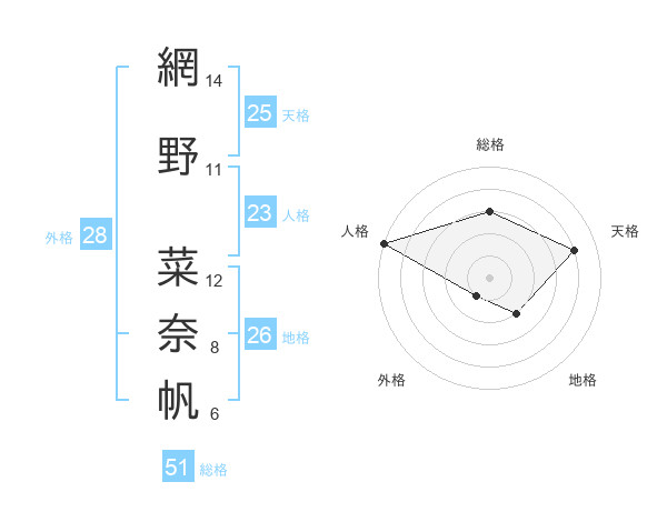 網野 菜奈帆さんを姓名の画数から五運を鑑定