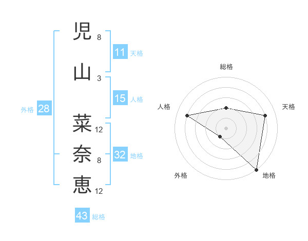 児山 菜奈恵さんの天格は11画の4点!