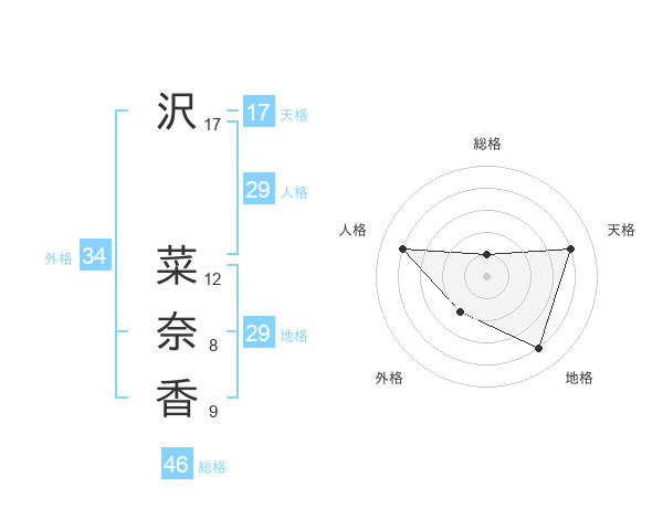 沢 菜奈香さんを姓名の画数から五運を鑑定